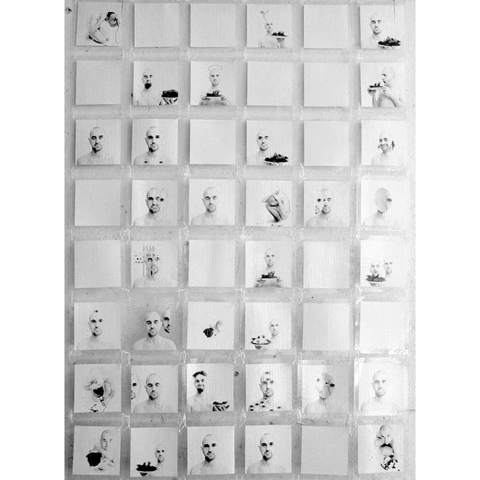 Die 48-teilige Arbeit besteht teilweise aus Original-s/w-Fotografien, teilweise aus am Computer bearbeiteten Fotografien und